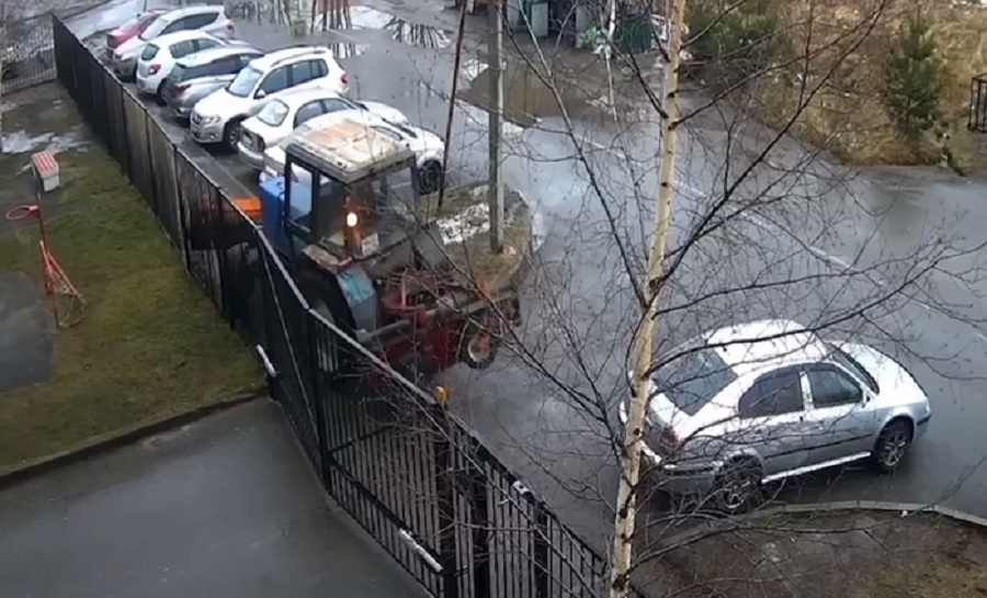 «Вон тот на серой «Шкоде» поставил свою машину не пойми как, а трактору не выехать, старался ее не задеть. Задел бы, вызвал ГИБДД, зато больше бы не ставил так»,
