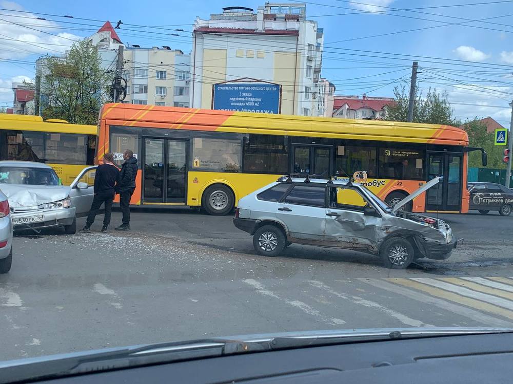 YarNews.net фото: Ярослав Мазур Авария случилась днем 15 мая. Два «ВАЗа» — «девятка и десятка» — столкнулись прямо напротив УМВД России по Ярославской области.