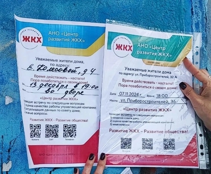 «Данные объявления от лица Центра не размещались на фасаде данного дома, собрание по этому адресу не планировалось. Прошу граждан быть бдительными, так как на объявлениях от лица Центра мы обязательно указываем ИНН и подлинные ссылки на сайт и социальные сети нашей организации. Встречи проводим исключительно после обращения граждан. Прежде чем развесить объявление о встрече с жителями, специалисты Центра в обязательном порядке связываются с советом дома, председателем или старшим по дому и стараемся рассказать о своих намерениях»,— заявила Татьяна Потемкина.