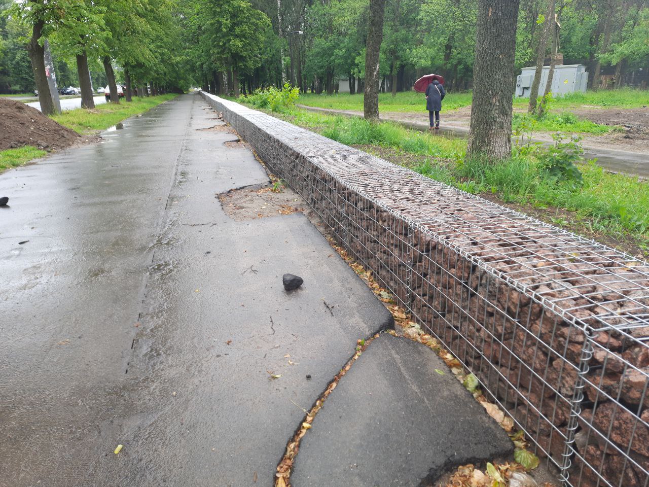 — Подрядная организация завершает работы по установке нового ограждения из габионов и обновлению «народных» дорожек, которые выполнены из крупноформатной тротуарной плитки, продолжается закладка кабеля для подключения освещения входных групп. В настоящий момент есть небольшие сложности с прокладкой сетей, так как в некоторых местах идёт наложение на инженерные сети других организаций. Данный вопрос в оперативном режиме решаем, — рассказал первый заместитель директора департамента городского хозяйства мэрии Ярославля Дмитрий Сергеев.