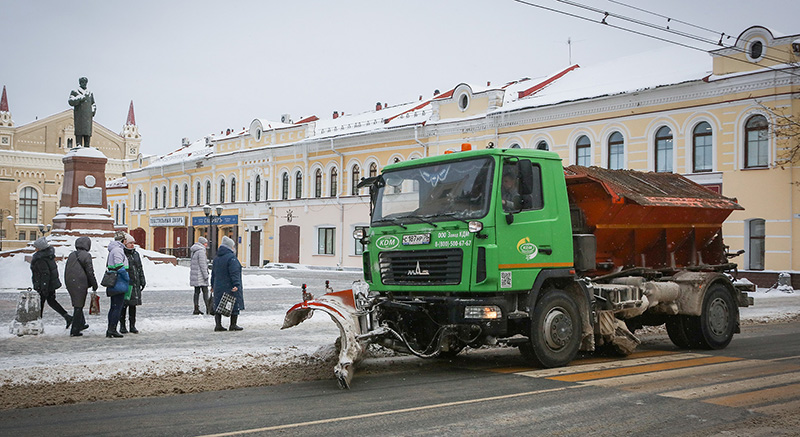Коммунальщики вывозят снег преимущественно из центральной части города и Волжского моста, на широких улицах — пр. Революции, ул. Фурманова и др. – снег перебрасывают на свободные участки.