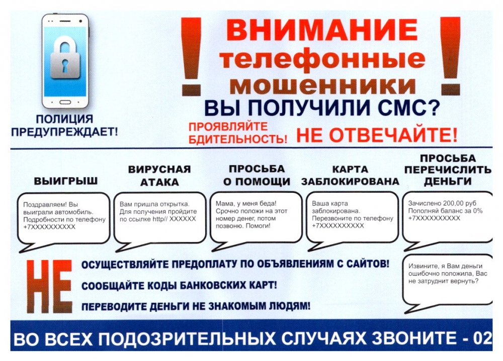 Будьте бдительны. В случае поступления таких звонков сразу же прекратите разговор, обратитесь в полицию по телефону 02, с мобильного 102.