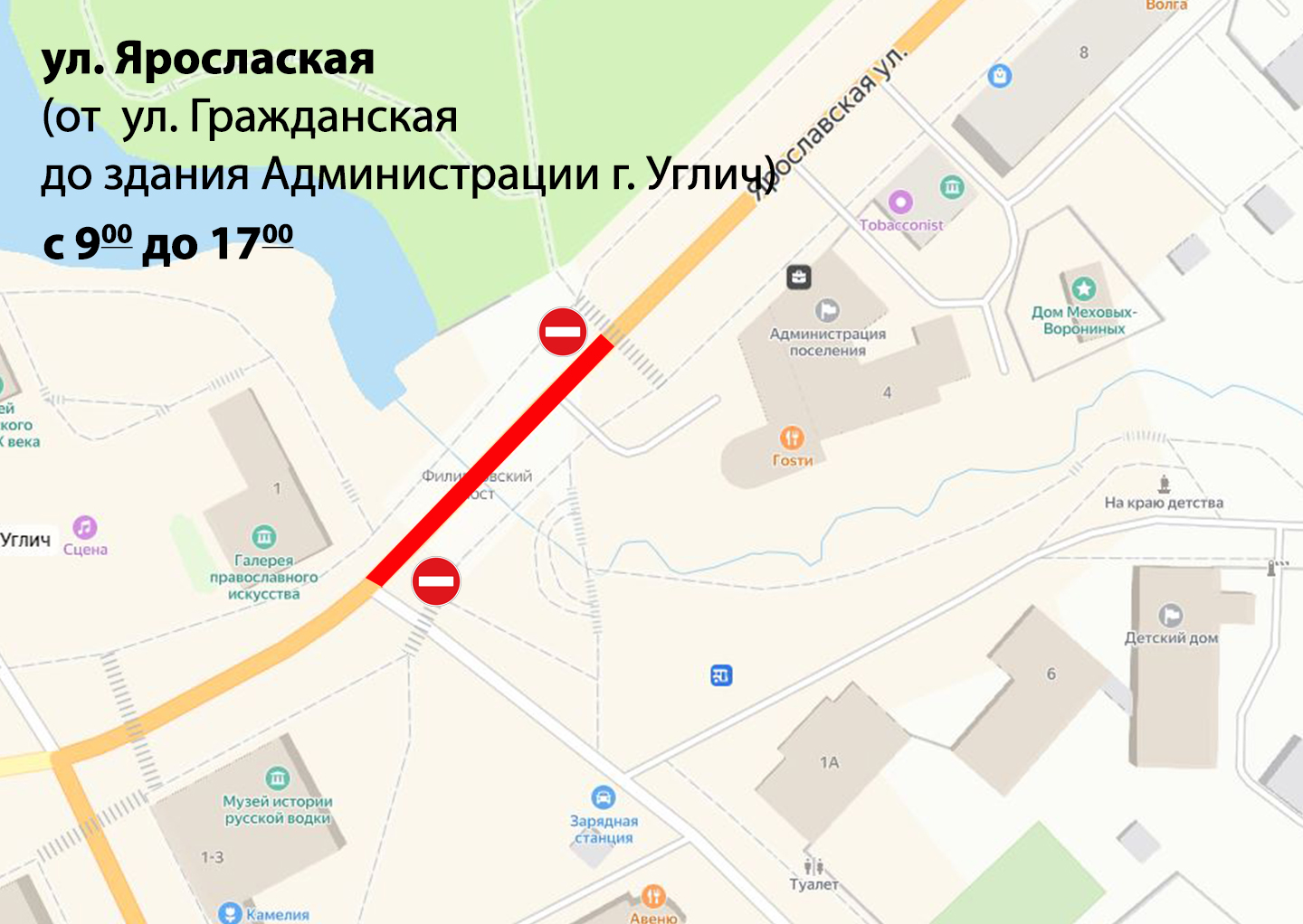 3 июня 2024 года с 9:00 до 17:00 на участке ул. Ярославская, от ул. Гражданская до здания Администрации г.Углич вводится временное ограничение движения транспортных средств, а связи с укладкой асфальтового покрытия.