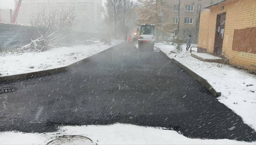 Ярославские подрядчики укладывают асфальт в снегопад
