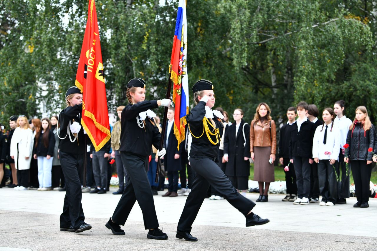 Сегодня у мемориала «Вечный огонь» состоялось торжественное открытие несения вахты Почётного караула на Посту №1 в новом учебном году.