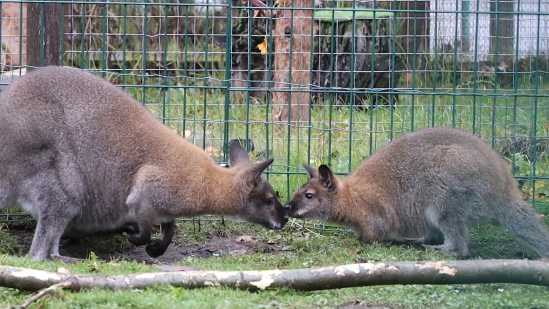 Городской зоопарк опубликовал видео трогательного воссоединения кенгуренка с его родителями.