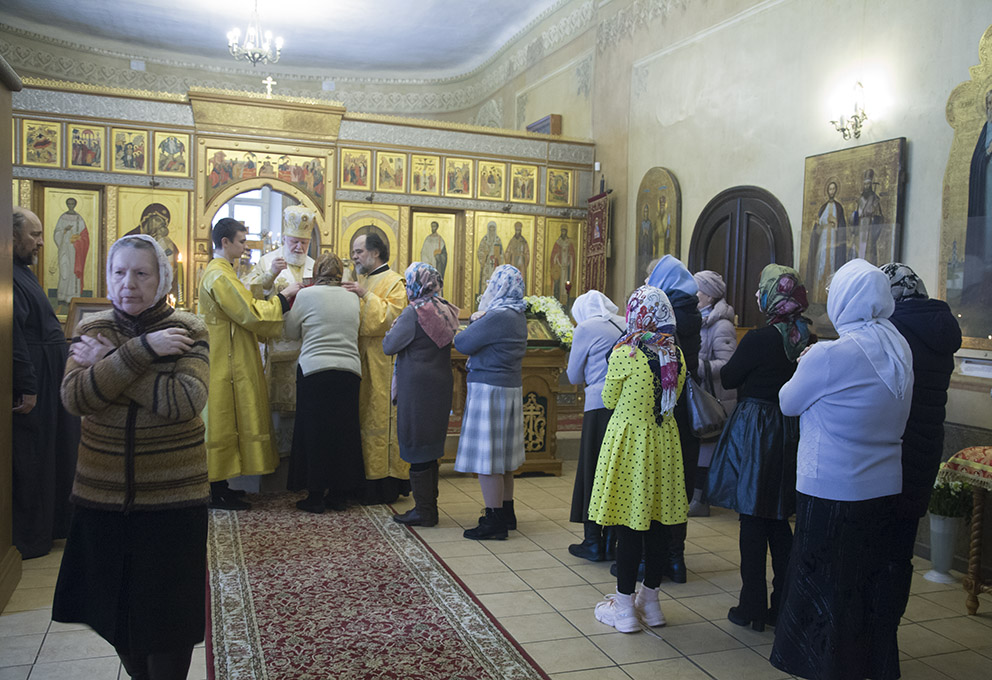 Владыке митрополиту сослужили благочинный монастырей Ярославской епархии и настоятель Петровского монастыря г. Ростова Великого игумен Климент (Новиков), настоятель Спасо-Афанасиевского монастыря игумен Никодим (Федоров), клирики обители и храмов епархии.
