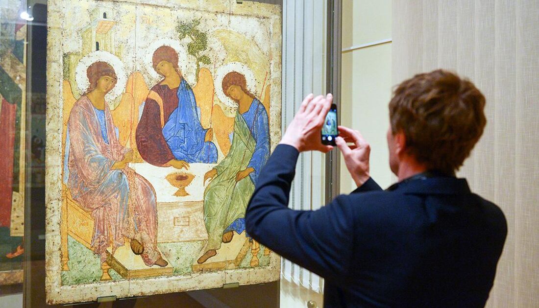 Помещение шедевров и реликвий в музейные саркофаги — это вообще колониальная задумка XIX века, под соусом которой сначала натащили великих древностей в главные столицы Европы, а потом уже принялись защищать и свои локальные артефакты. «Троица», хранящаяся в музее, для всех, кроме узких специалистов, — это бледная доска с темными ликами, на которой что-то сложно-религиозное нарисовано. Залы с иконами в музеях проходят обычно быстрым шагом, поскольку все скопом, в отрыве от духовного контекста, они не слишком завлекательны для зрителя, пришедшего на очередную модную и яркую выставку.