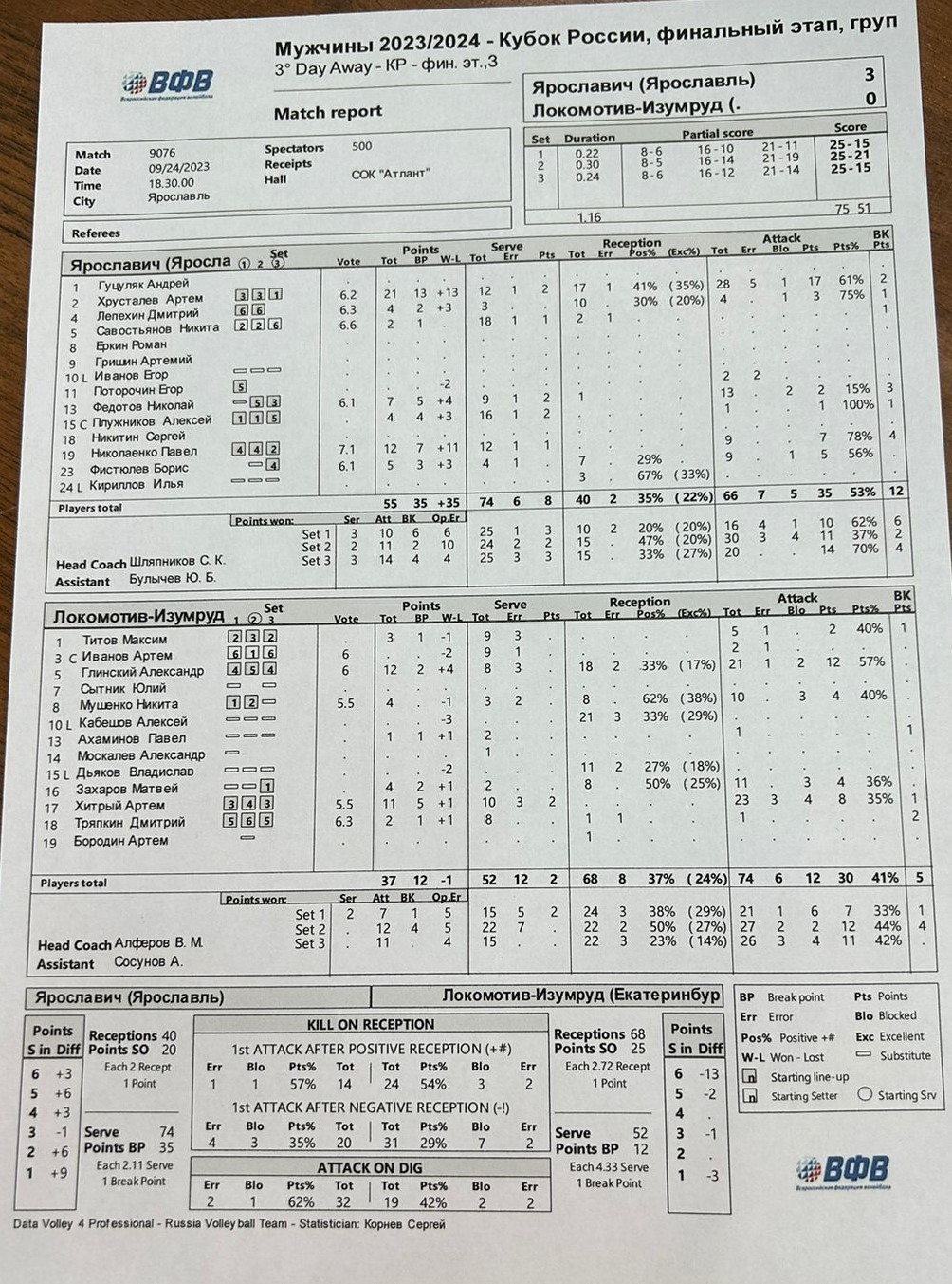 Статистика матча: Атака: 35-30, Блок: 12-5, Подача: 8-2, Ошибки соперника: 20-14.