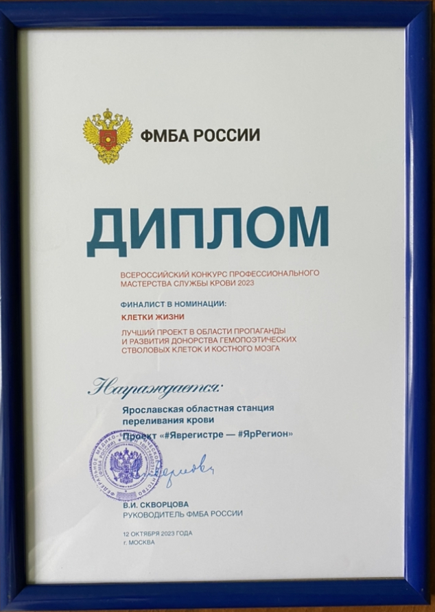 Конкурсная работа нашей станции #ЯвРегистре- #ЯрРегион, посвященная формированию регистра доноров костного мозга и гемопоэтических стволовых клеток в Ярославской области вышла в финал конкурса профессионального мастерства Службы крови России.