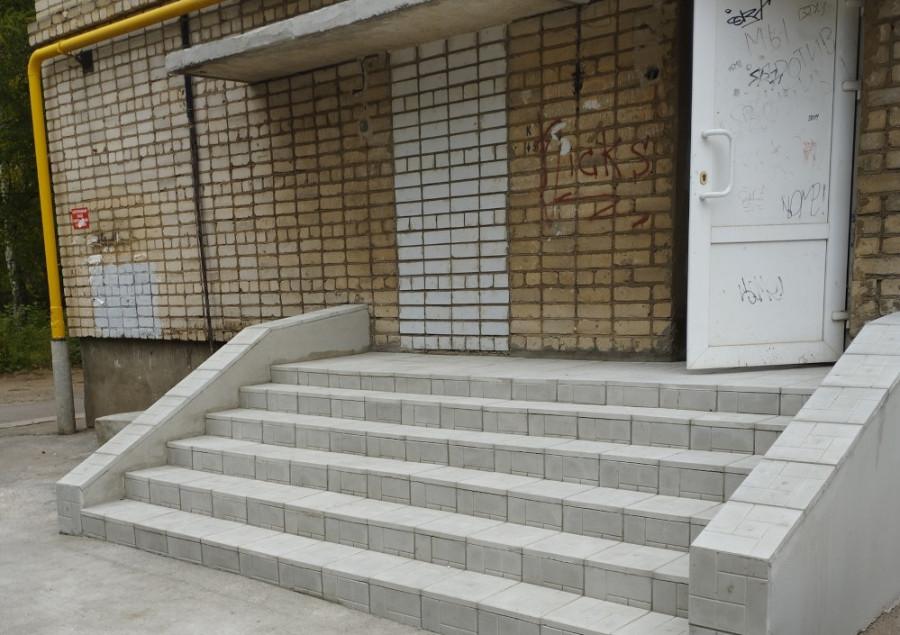 В настоящее время выполняются работы по ремонту крылец и выравниванию стен и полов внутри помещений.