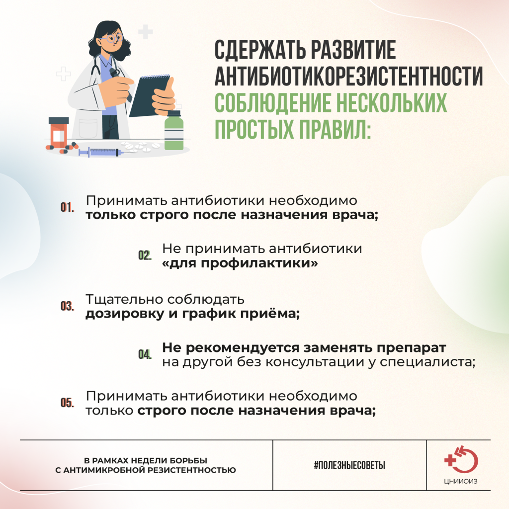 - Повышение осведомленности о правильном использовании антибиотиков среди населения;