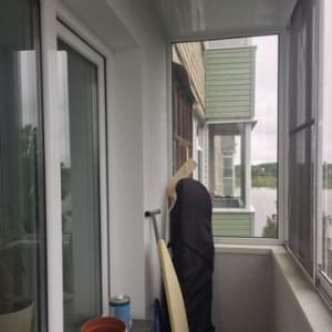 3) Застеклен балкон, обшит. На балконе есть свет, розетка, теплый пол.