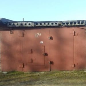 Кирпичный, оштукатуренный, перекрытие — железобетонные плиты, кровля рубероидная. Гараж электрифицирован (в данный момент временно отключено), есть стелажи и деревянный пол, имеется кессон (не течет). Подьезд доступный (за ПАТП—3). Ямы нет но при желании можно сделать самому.