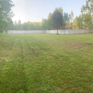 Вeсь учaсток oгоpожен капитальным зaбoром (ceбестоимость материалов 1 млн рублей), по всему периметру на датчик света сделано уличное освещение диодными фонарями.