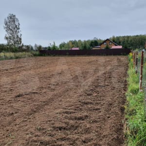 Участок правильной прямоугольной формы, по периметру огорожен забором (металлические столбы и сетка рабица).