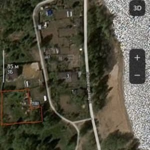 Земельный участок у пляжа. До воды 50 метров. Есть металлический гараж. Дом под снос. Электричество. Хороший подъезд к участку.